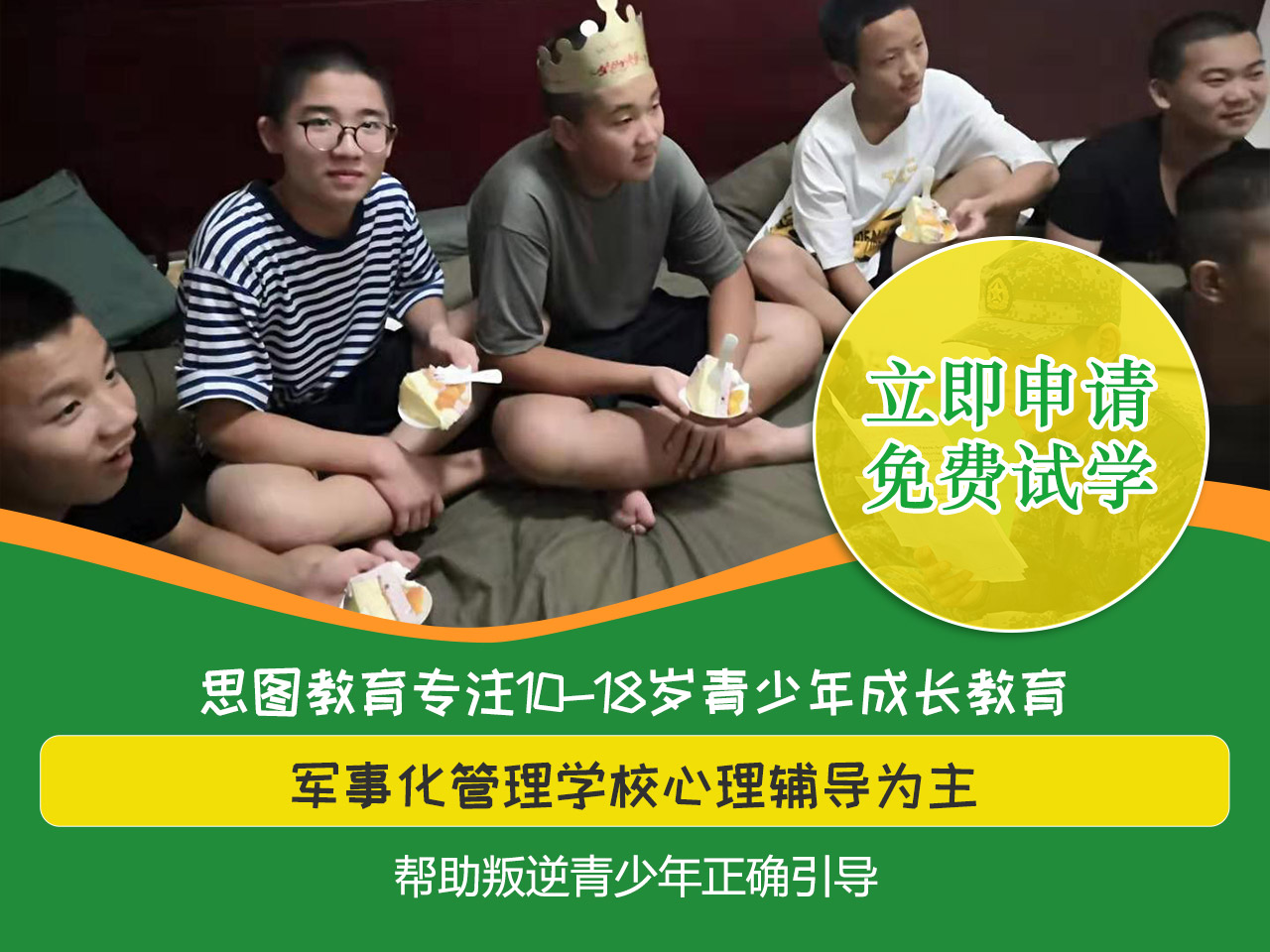 叛逆期孩子怎么教育?为了响应河南省心理健康研究院号召,推进我省青少年心理健康教育普及,思图叛逆期孩子特训教育特别推出“免费试学”活动,拨打热线电话:0371-5505-1949,即可申请免费试学,名额有限,招满即止。
